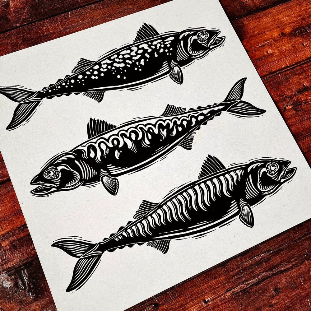Printed on 300gsm recycled off white paper which has a finely textured appearance and a slightly textured feel, with darker flecks and fibres across the paper.